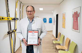 Dr. Ulrich Schneider and Dr. Oliver Meier have once again been included in the prestigious list of star doctors. Dr. Ulrich Schneider, Head of Doctor at Hellersen Sports Medicine, was honored in the Sports Medicine category, while Dr. Oliver Meier, Chief of Special Spine Surgery at the German Spine and Scoliosis Center, was recognized for his outstanding expertise in spine surgery. This significant recognition underlines their excellent medical services and tireless commitment to providing the best possible care for their patients.